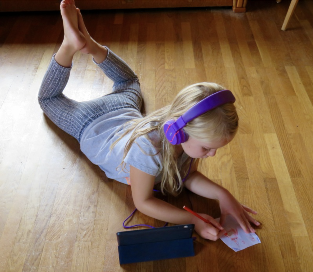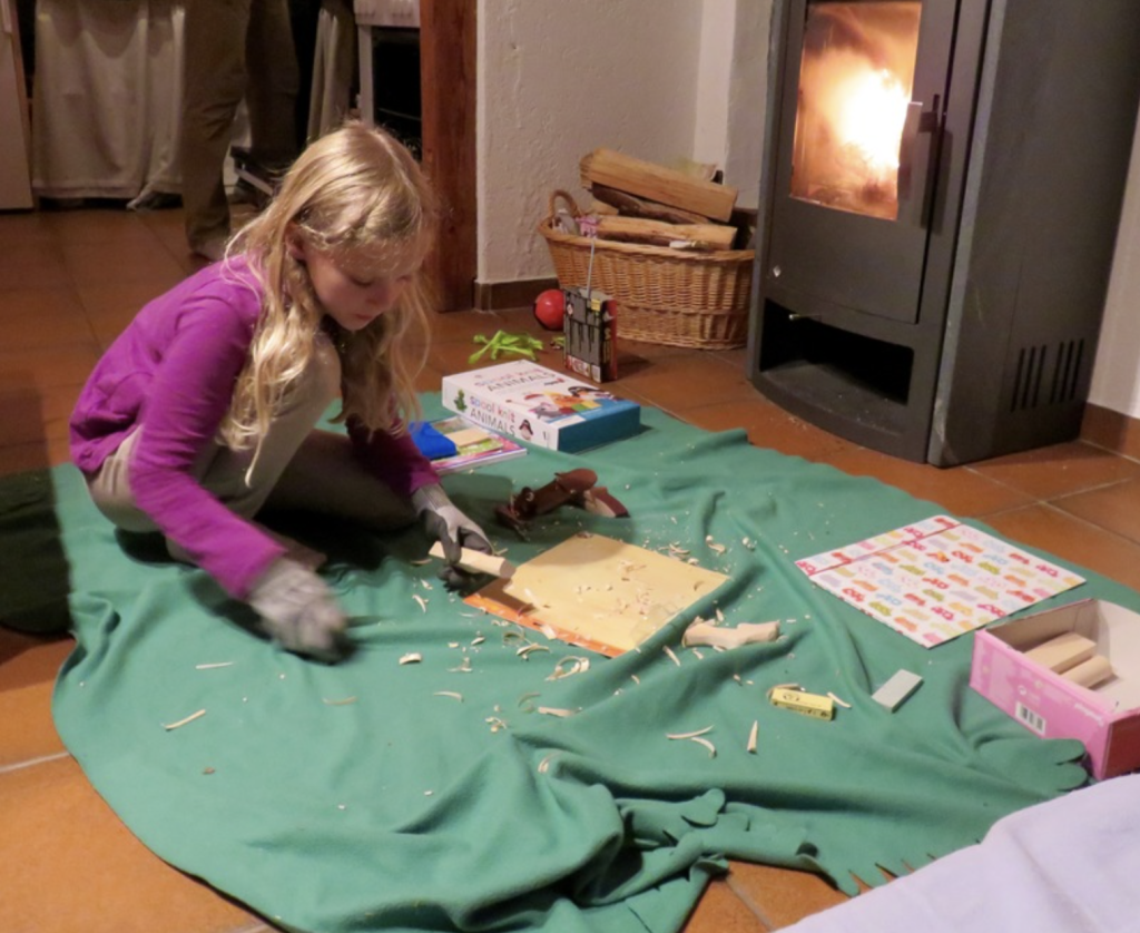 Our stories are typically about 30-35 minutes long — perfect for recharging during quiet time. When our kids listen to stories during quiet time, they usually color or play with simple toys like Legos or Playmobil. Our 10-year-old has started whittling while she listens (messy but fun!) – anything that keeps their hands engaged while their minds are deep in another world. We’ve been adding crossword puzzles, word searches and coloring pages in the parent guides just for this purpose, and best of all, the clues to the puzzles are in the stories!