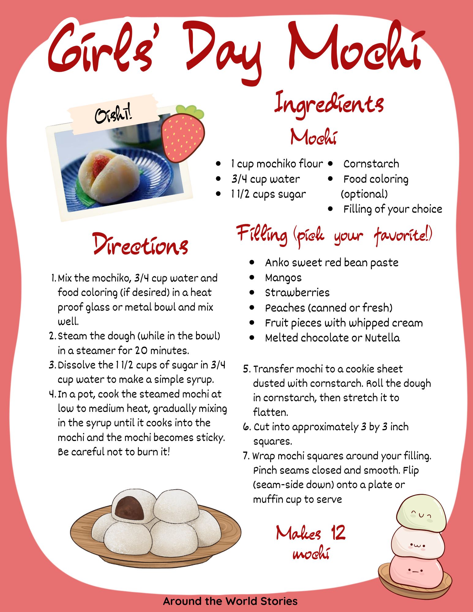 Japan is known for showing respect for the elderly. But on May 5th each year Japanese parents take the day to also honor their children — to respect their individual personalities and celebrate their happiness. On Kodomo no Hi (Children’s Day) there are festivals held around the country where kids can go on rides, play games, and watch live music. At home, Japanese families hang fish-shaped windsocks and eat sweet mochi. This holiday is a perfect opportunity to create your own family traditions while also learning about Japan. Play games, picnic in the park and do whatever makes your kids happy. You might not have the fish-shaped windsock handy, but this mochi recipe is perfect to make and eat with your kids.