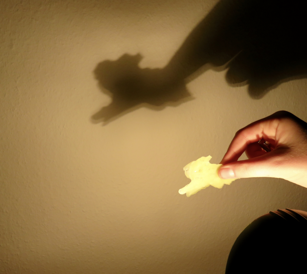 - Hold the wax next to the lamp so it casts a shadow on the wall.
